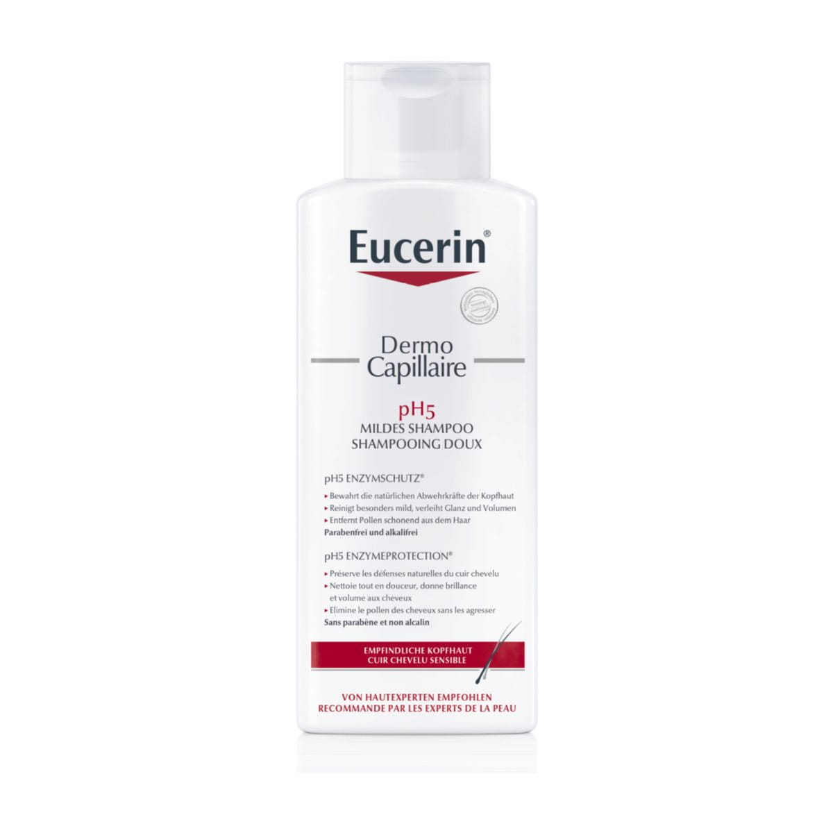 Eucerin DermoCapillaire pH5 SHAMPOO für empfindliche Kopfhaut sowie bei Pollenallergie und Eucerin DermoCapillaire HYPERTOLERANT SHAMPOO für extrem empfindliche Kopfhaut reinigen sanft und gründlich mit milden Tensiden. Erfahren Sie mehr über das milde Shampoo für empfindliche Kopfhaut und das Shampoo für extrem empfindliche Kopfhaut.
