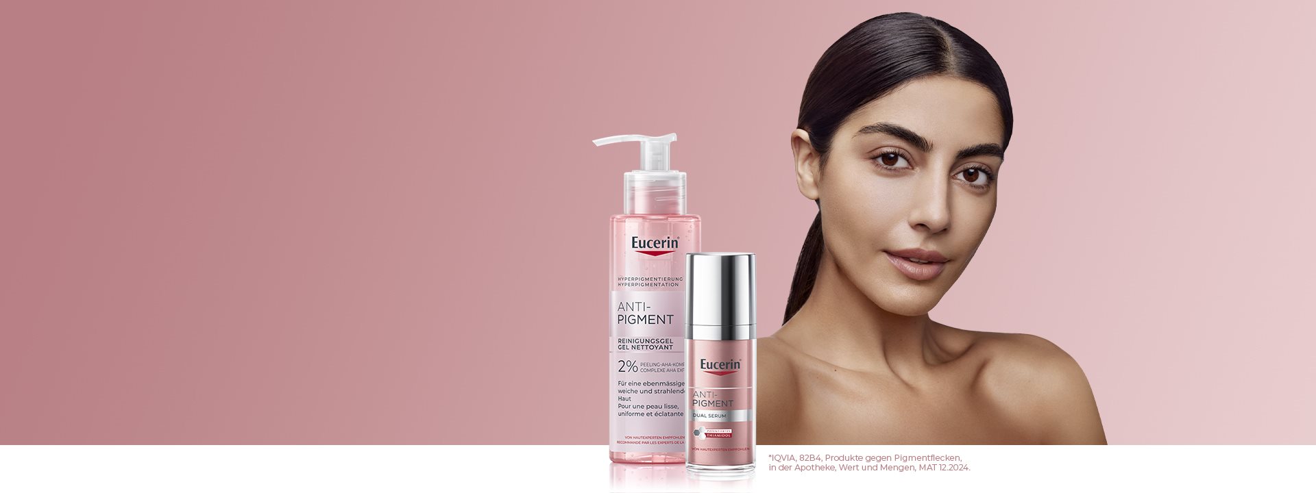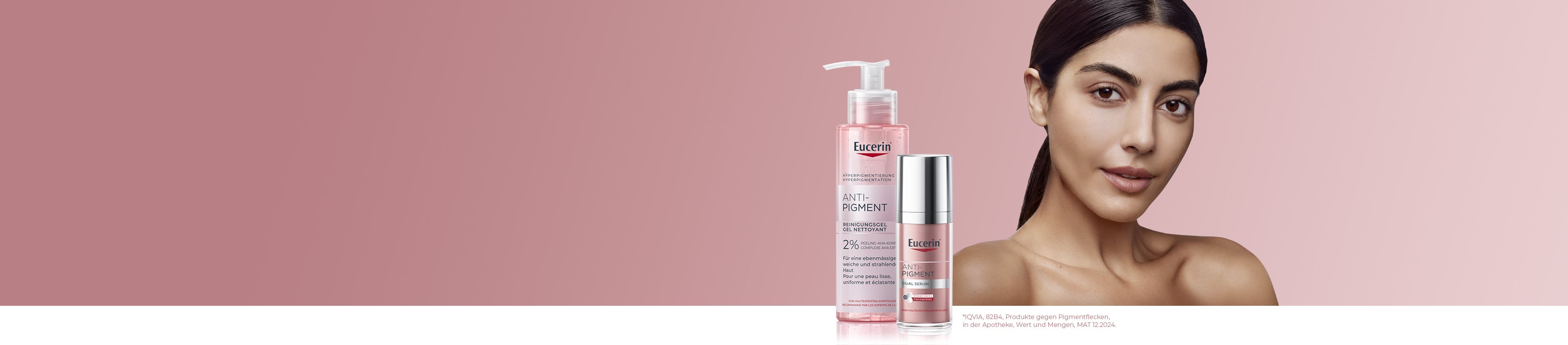 Sonnenexposition, hormonelle Einflüsse und Hautalterung können zu unregelmässiger Pigmentierung führen. Pigmentflecken und Altersflecken lassen die Haut unregelmässig erscheinen. Die Eucerin Anti-Pigment Pflegelinie wurde speziell zur Reduktion von Pigmentflecken entwickelt - für einen ebenmässigen und strahlenden Teint.