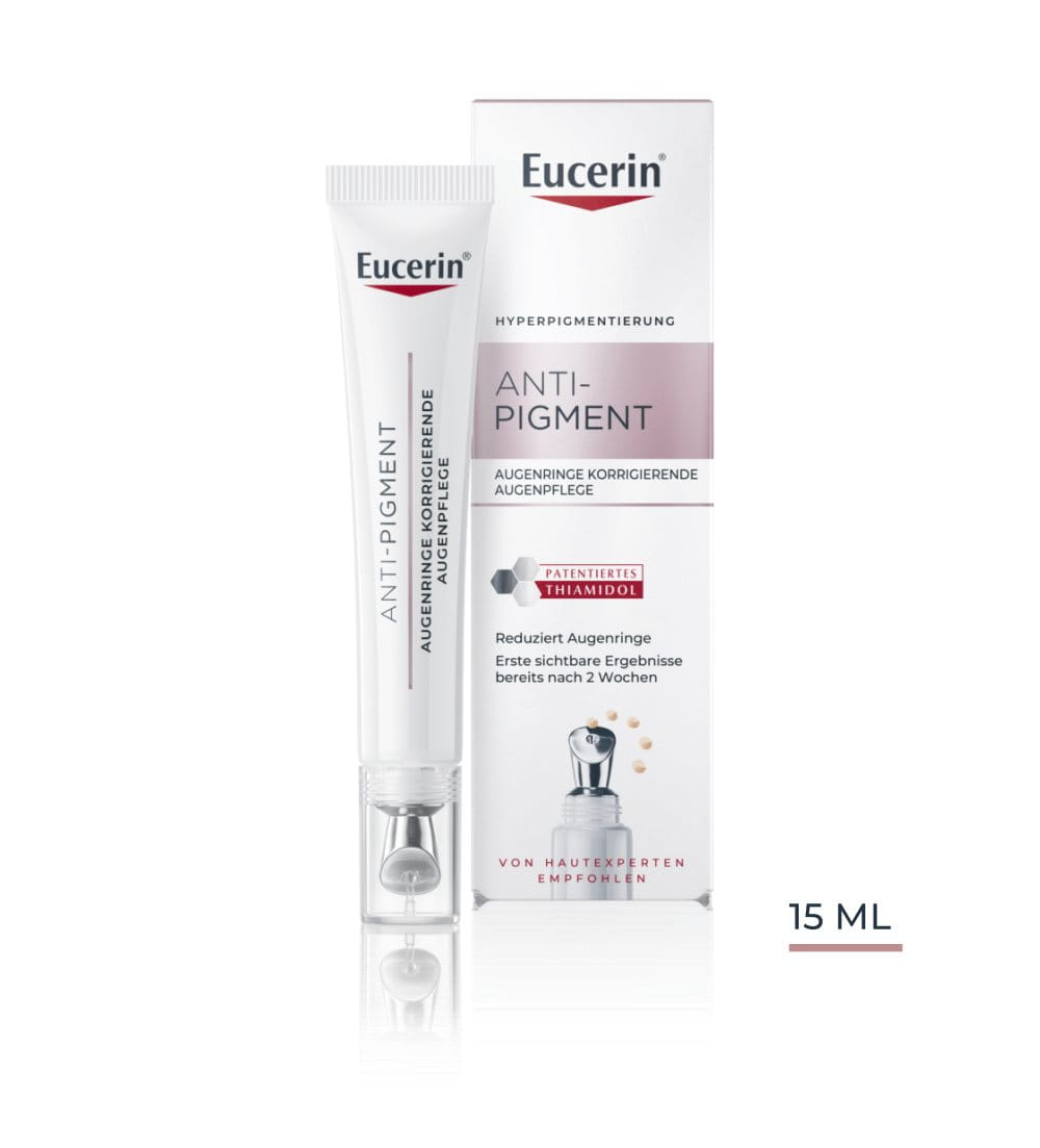 Die frische und leichte Formel der Eucerin® Anti-Pigment Augenringe Korrigierende Augenpflege kombiniert leistungsstarke Wirkstoffe, die auf verschiedene Weise wirken, um die Haut zum Strahlen zu bringen, Hyperpigmentierungen zu reduzieren und die Augenpartie aufzuhellen und zu glätten.