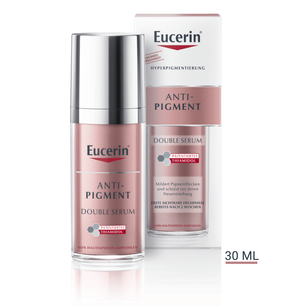 Eucerin® Anti-Pigment Dual Serum schützt die Haut nicht vor der Sonne. Weil die Sonne einer der Hauptauslöser für Hyperpigmentierung ist, ist es wichtig, Produkte mit Lichtschutzfaktor zu verwenden – auch an bewölkten Tagen. Wenn Sie das Eucerin® Anti-Pigment Dual Serum am Morgen auftragen, empfehlen wir Ihnen, im Anschluss die Eucerin Anti-Pigment Tagespflege LSF 30 anzuwenden. So verblassen existierende Pigmentflecken und die Haut wird gleichzeitig vor der Sonne und damit vor der Neuentstehung von sonnenbedingten Pigmentflecken geschützt. An Tagen, an denen Sie der Sonnen intensiv ausgesetzt sind, wählen Sie ein Produkt mit einem noch höheren Lichtschutzfaktor aus unserer Eucerin® Sonnenschutzlinie.