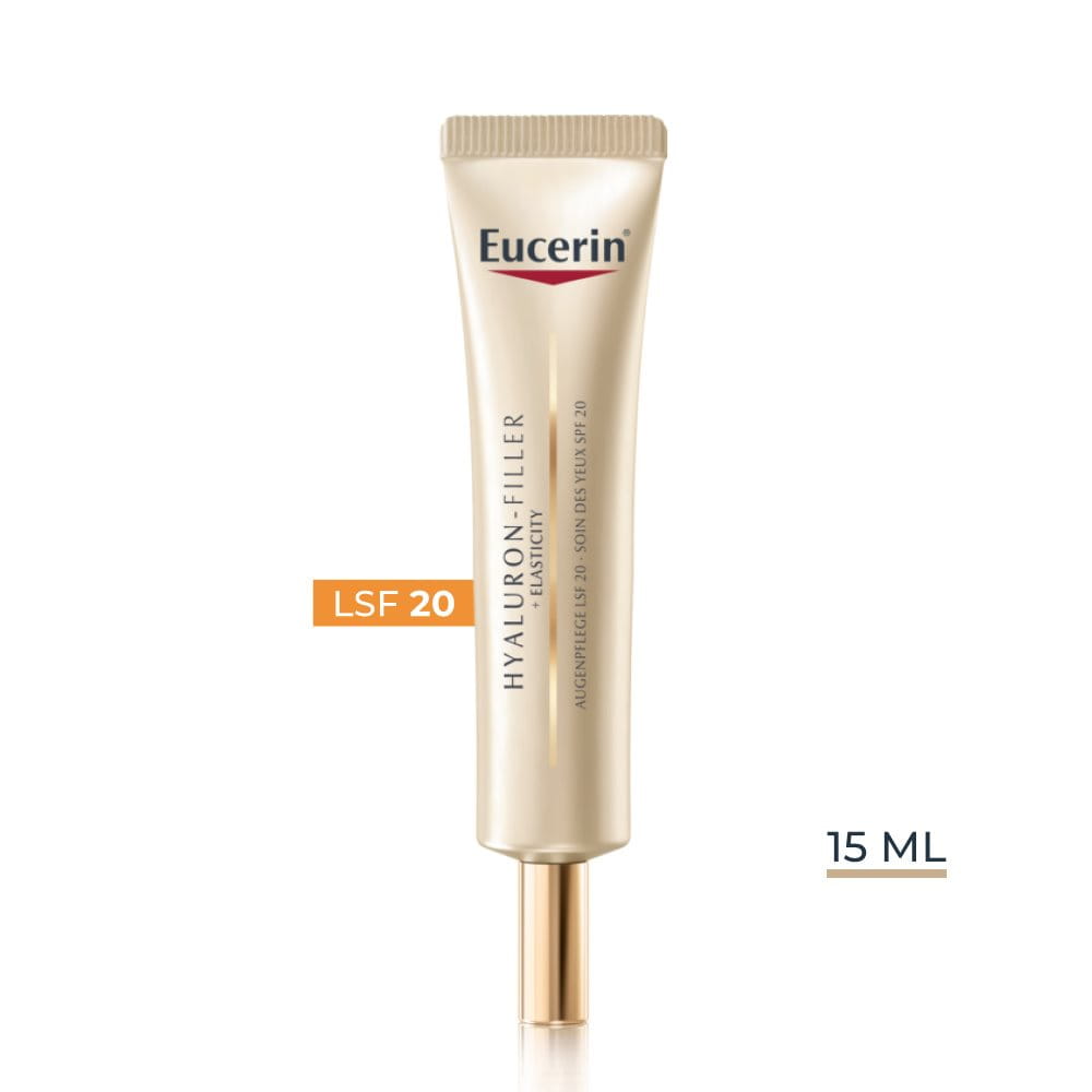 Eucerin Hyaluron-Filler + Elasticity Augenpflege LSF 20 ist eine Anti-Age Augencreme, die Augenfalten mildert, die Elastizität der Haut verbessert und die Hautstruktur stärkt.