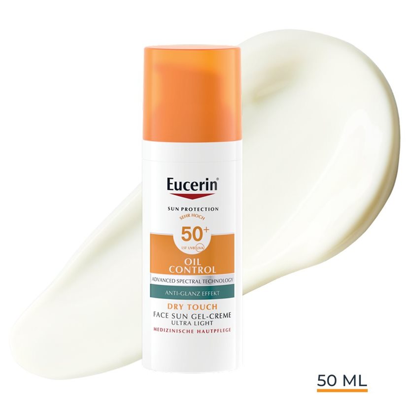 Eucerin Sun Gel-Creme Oil Control LSF 50+ ist ein ultraleichter Sonnenschutzgel für den täglichen Gebrauch mit sehr hohem Lichtschutzfaktor, die speziell für fettige und zu Unreinheiten neigende Gesichtshaut entwickelt wurde. Sie verbindet einen hervorragenden Lichtschutz gegen durch Sonneneinwirkung hervorgerufene Schädigungen der Haut mit einer aktiven Lösung zur Verbesserung des fettigen Hautzustandes.