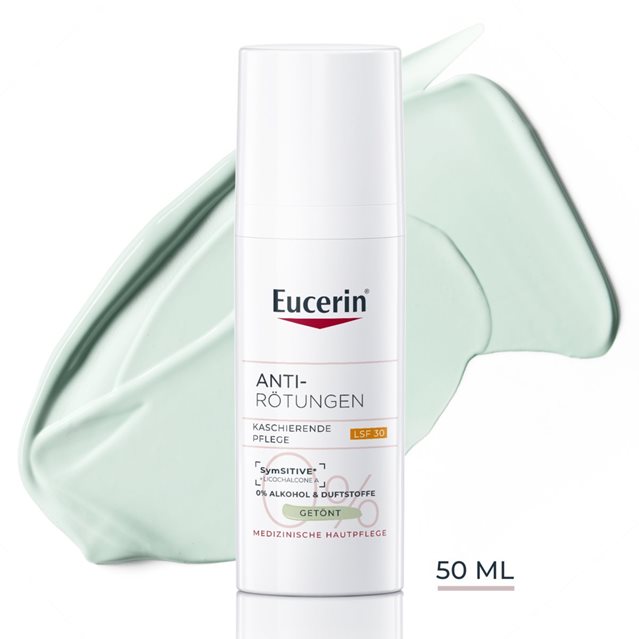 Eucerin AntiRötungen Kaschierende Tagespflege getönt mit LSF 30 wurde speziell für überempfindliche und zu Rötungen neigende Haut entwickelt.