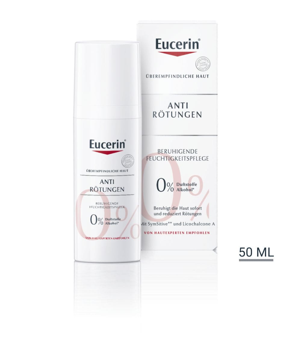 Eucerin AntiRötungen Beruhigende Feuchtigkeitspflege wurde speziell für gerötete und überempfindliche Haut entwickelt. Sie sorgt für eine umgehende und langfristige Beruhigung der Haut und lindert Rötungen, während die Haut gleichzeitig geschützt wird und Irritationen allmählich reduziert werden.