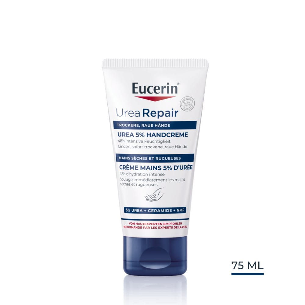 Eucerin UreaRepair 5% Urea Handcreme gibt trockenen, rauen Händen die tägliche Pflege, die sie brauchen.