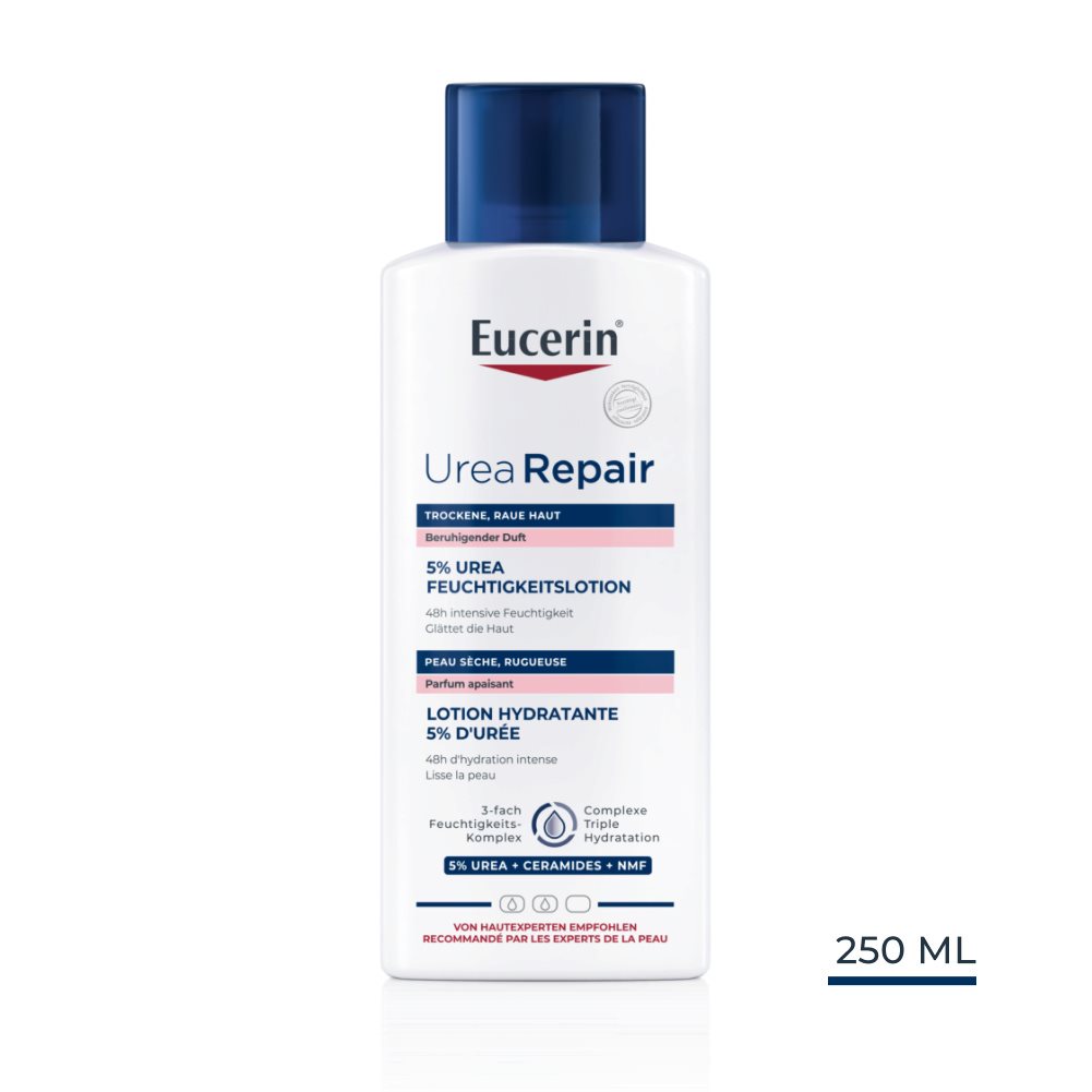 Das leicht parfümierte Produkt aus der Eucerin UreaRepair Reihe - Eucerin UreaRepair 5% Urea Feuchtigkeitslotion (beruhigender Duft) - kombiniert bewährte Wirksamkeit mit einem zarten, beruhigenden und hautfreundlichen Duft, der frei von Parfümstoffen ist, die bekanntermassen Allergien auslösen können, und nachweislich von trockener, empfindlicher Haut gut vertragen wird. So können Sie jetzt das Beste aus beiden Welten geniessen, ohne Kompromisse eingehen zu müssen.
